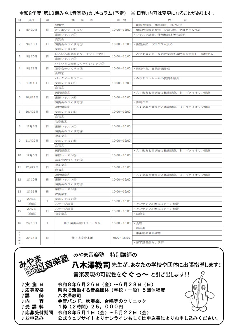 令和8年度 みやま音楽塾(第12期)